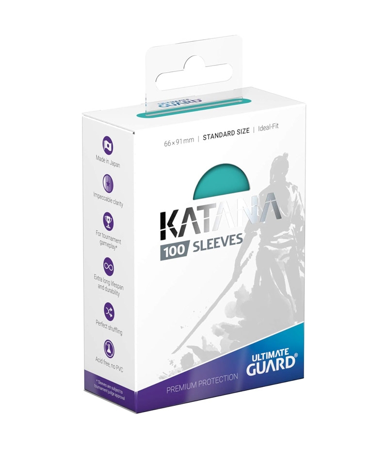 100 Fundas Cartas Medida Standard 66 x 91 mm Turquesa, Katana Ultimate Guard
