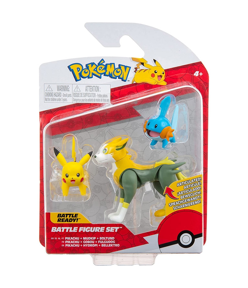 Figuras Pokémon Pikachu + Mudkip + Boltund, Battle Figure Set, de 4 a 8 cm
