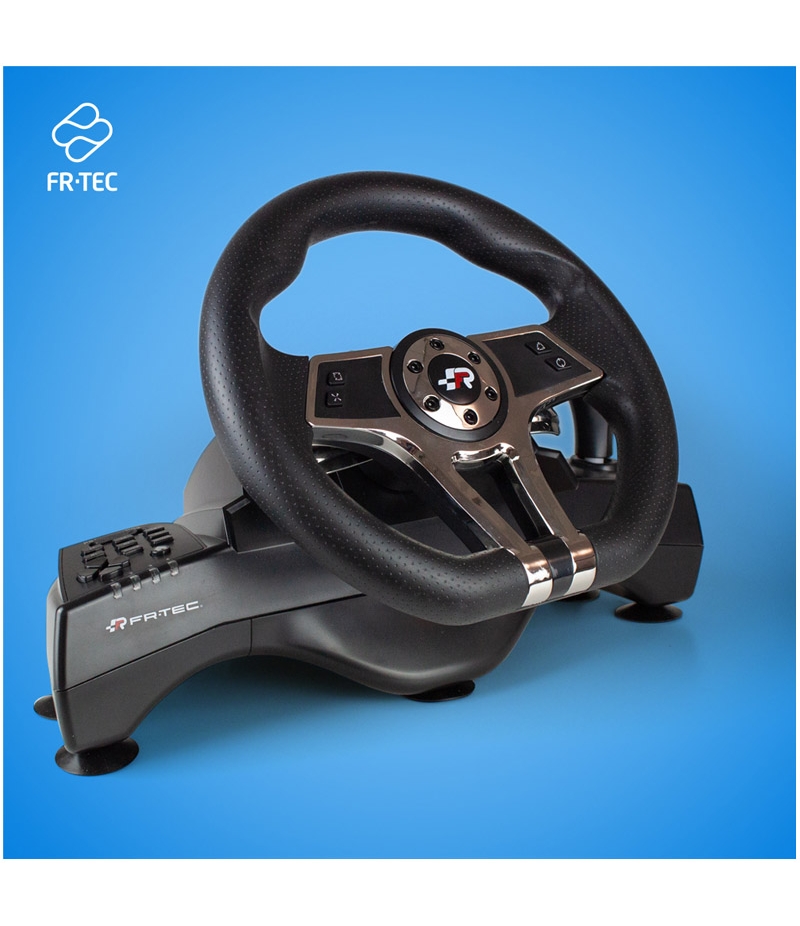 Dispone de levas y cambio de marchas secuencial para disfrutar de dos modos de conducción. Incluye pedales de freno y aceleración. Botones configurables y efecto de vibración.