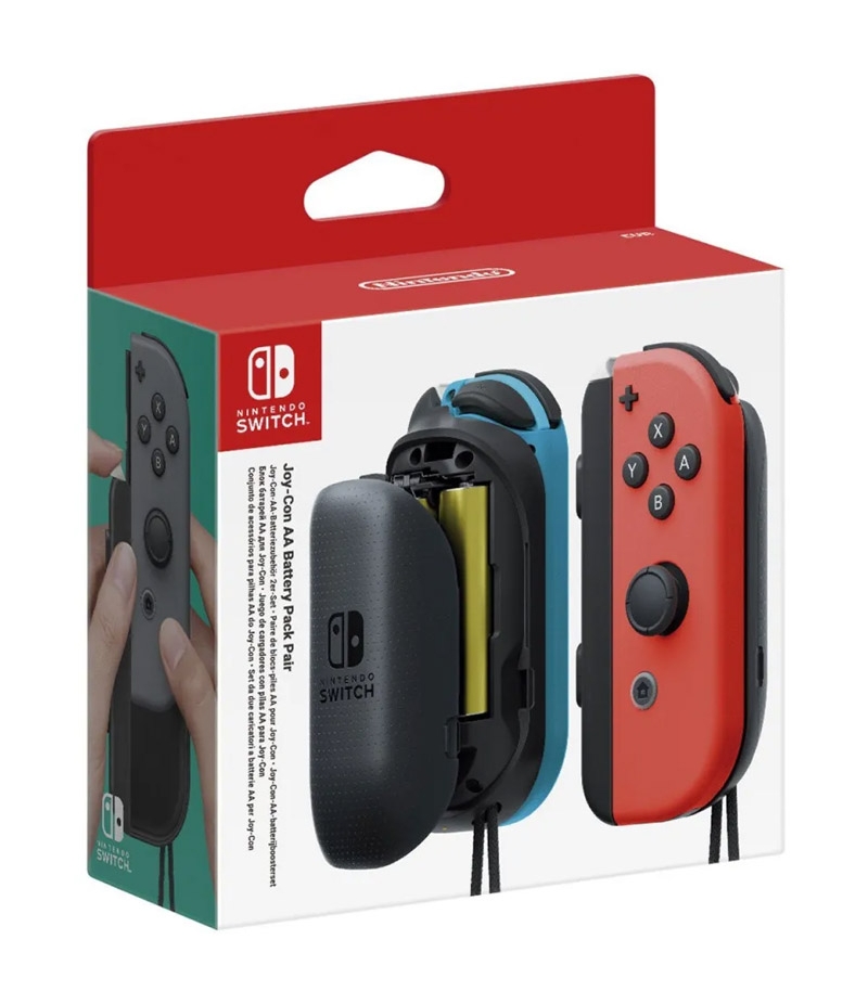 Juego de cargadores con pilas AA permite sujetar los mandos Joy-con comodamente y utilizarlos durante periodos mas largos.